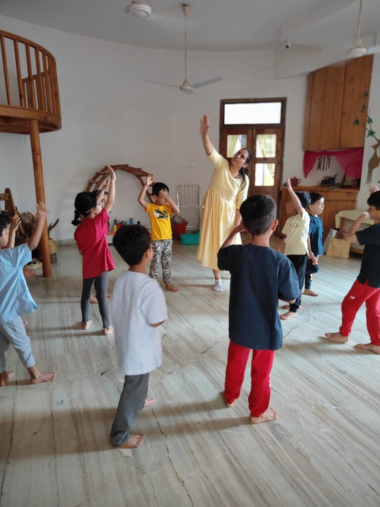 The circle is repeated at the same time every day and this repetition aids in memory and recollection and in a noninvasive way it assists in speech and language development. In grades, the kinesthetic experiences provided during circle times helps in learning math. It’s amazing to see how body memory aids in learning mathematical tables.